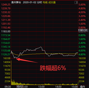 2019年经营情况不如预期 贵州茅台盘中一度跌超6%